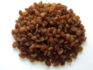 Dried seedless grape with sulfur smoke in a shade that they are golden amber in color