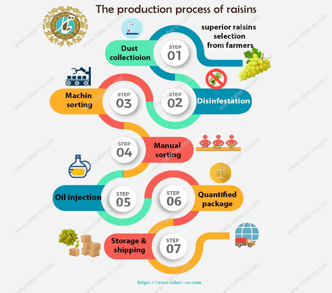 The cultivars of grapes suitable for raisins, should have the following characteristics: high percentage of sugar, fleshiness of the grape grain, seedless or small seed, softness of the tissue, uniformity of the berry size, rapid drying of the berry. Of course, cultivars of grapes with a lot of sugar and seeds are also used to produce a raisins called curry. The most important varieties of grapes suitable for drying are white seedless (Keshmesh or Sultana), red seedless (redness Ozum), white Asgari, Pikami,Yagooti and….The most important variety of grapes is used for drying in the world is: Thompson Seedless known as Sultanina, Sultanich, Kishmish , Sultana in various dialects.