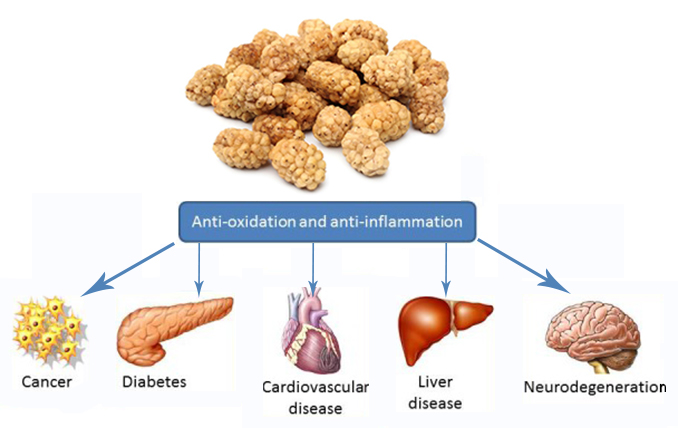 Dried white mulberries are mulberry fruits that are white in color and dried. According to different colors, mulberries can be roughly categorized into black and white types. In comparison, white mulberry is much juicier, sweeter, bigger, and tastier so that it is ideal to be consumed as fresh fruits. However in terms of nutritional value and medicinal uses, the difference between them are not so vast.