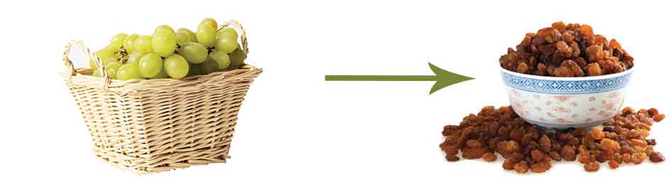 Raisins dry for around three weeks. Grapes darken as they dry, which gives raisins their dark brown color. Because they are dried naturally, they are usually the largest of Sultana.